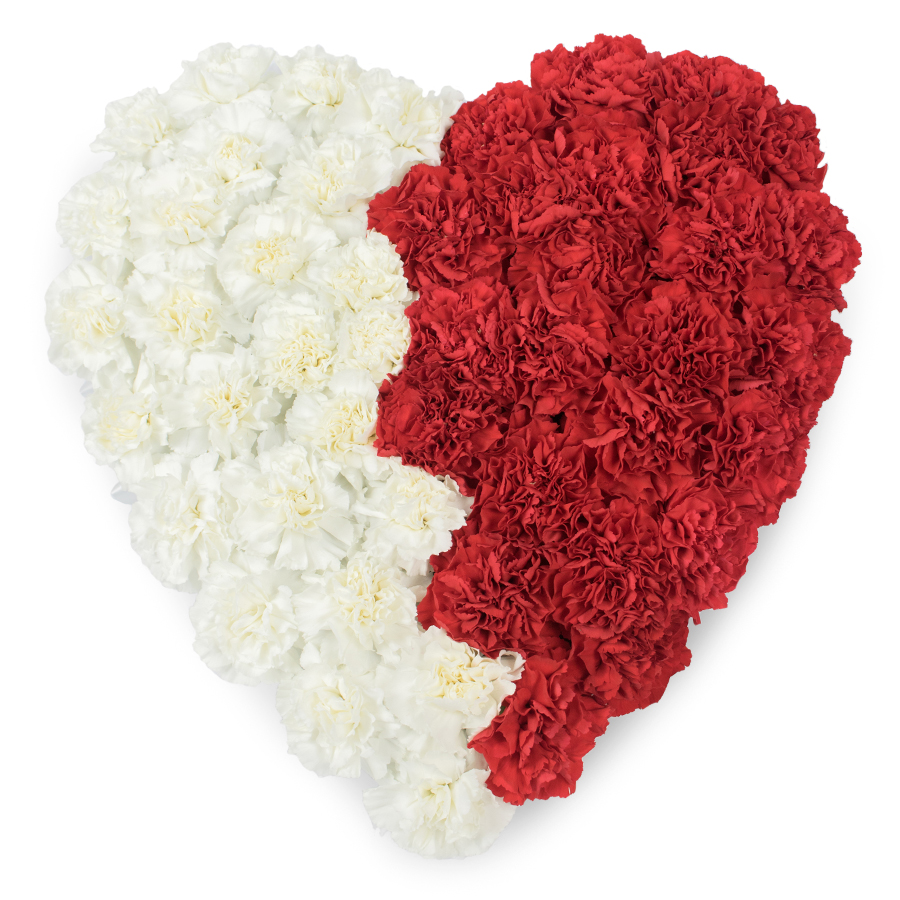 Celebrate beauty and compassion with our exquisite heart-shaped carnation bouquet. Featuring a harmonious blend of white and red carnations, each flower is hand-selected for freshness, ensuring a stunning display that conveys heartfelt sympathy.